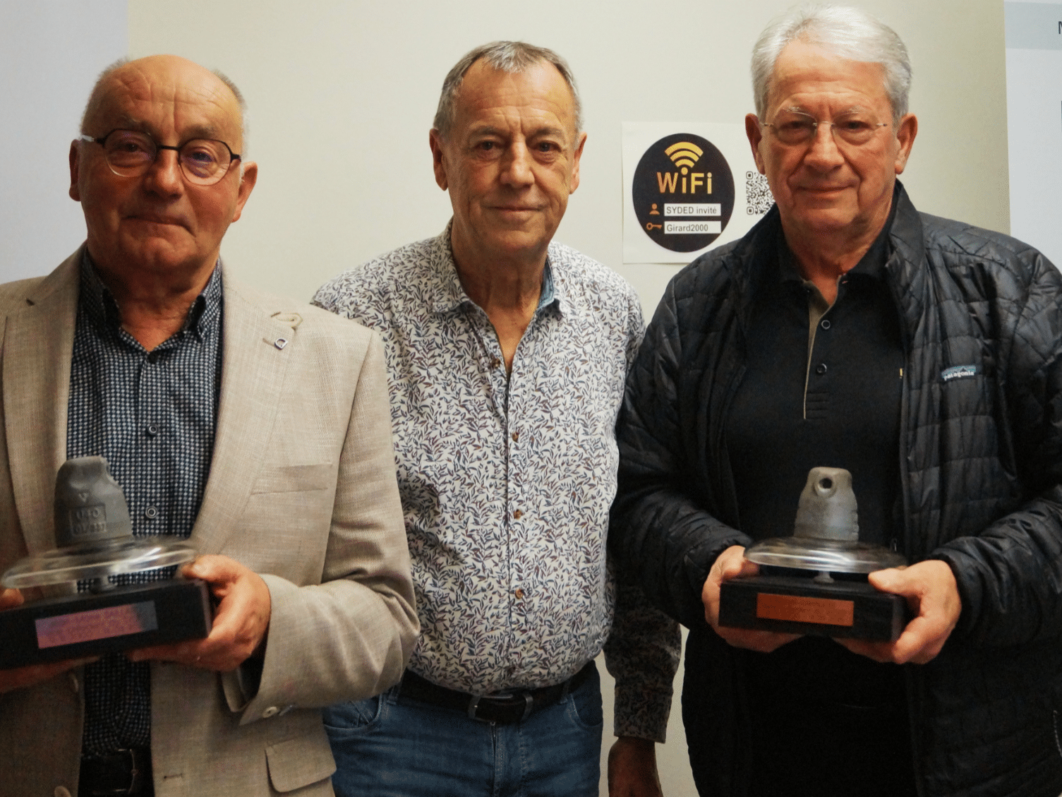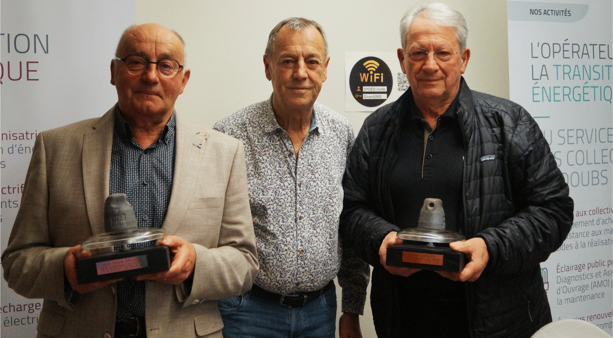 Lors de ce dernier comité syndical de la mandature, les élus du SYDED, représentés par Patrick Corne ont remis un trophée original aux 2 vices-présidents Jean-Marie Saillard et Daniel Granjon.